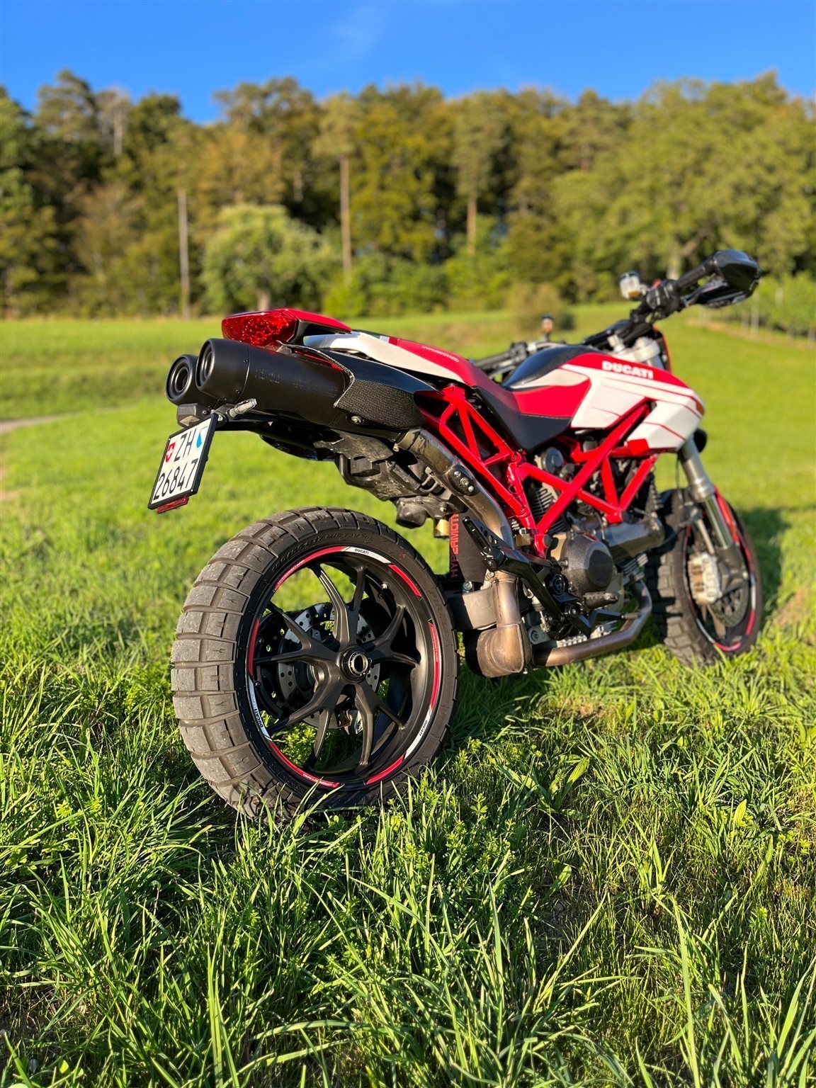 Ducati Hypermotard 1100 Baujahr 2008 mit viel Carbon und div. Extras. Ab. MFK und grossen Service Vp. 7500.-