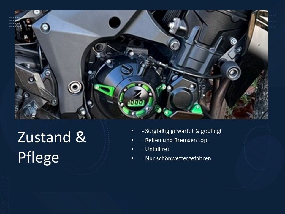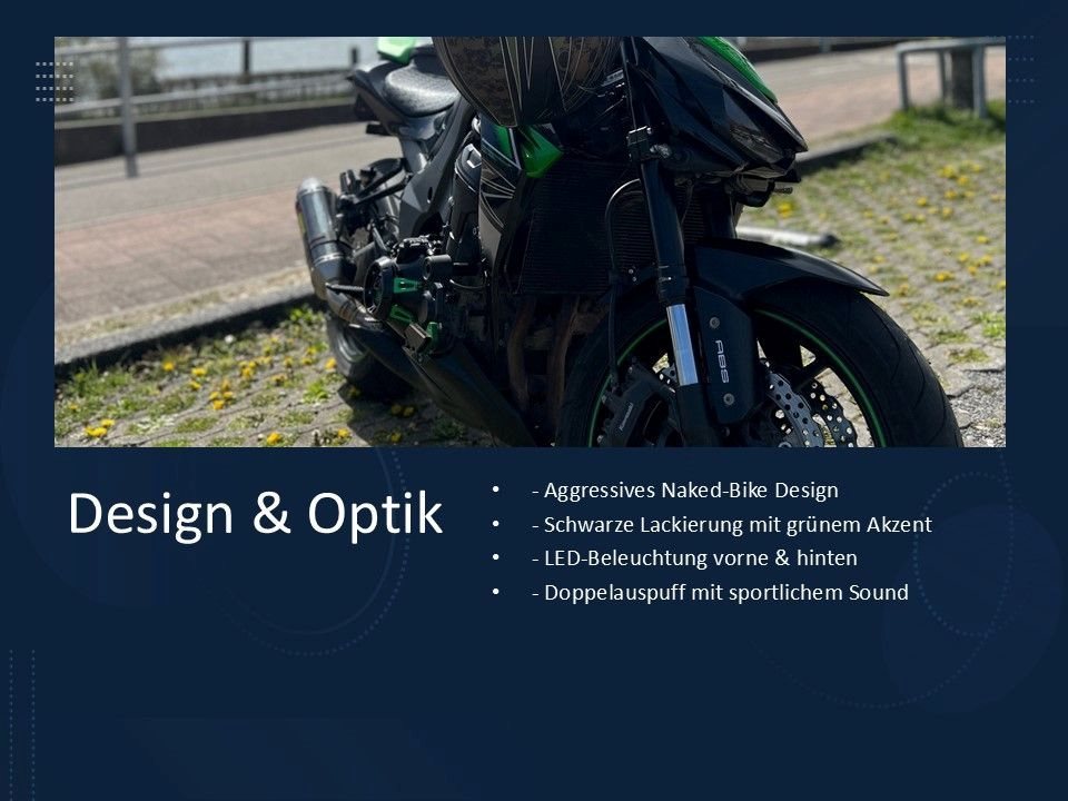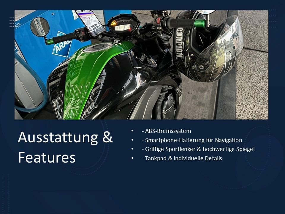 Elegant, kraftvoll und absolut einzigartig: Die Z1000 zieht überall Blicke auf sich und bringt jedes Herz zum Rasen egal ob auf der Landstraße oder beim nächsten Biker-Treff.