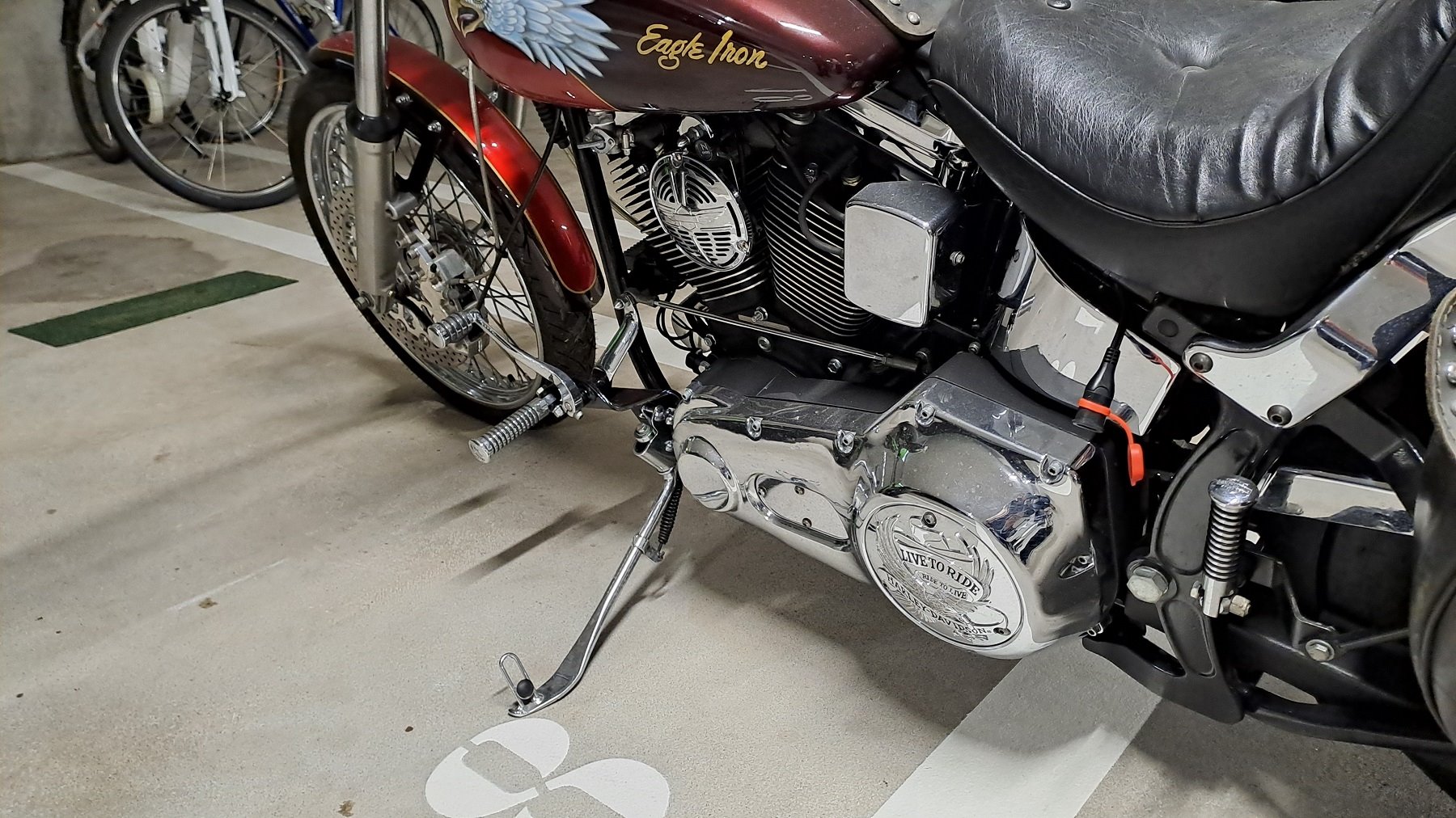 Die Fussraster wurden vorverlegt und die Vorderradbremse wurde durch eine 6 Kolbenzangen Bremse aufgewertet mit passender Bremsscheibe. Alles ist eigetragen und wurde so geprüft!