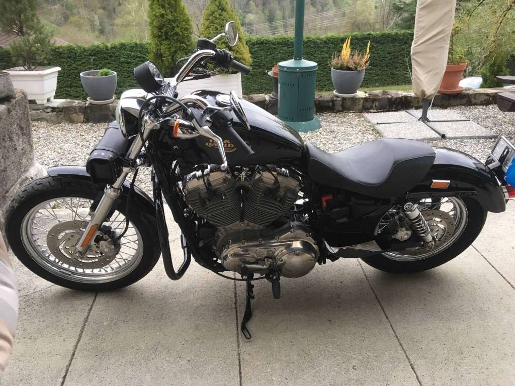 Harley Davidson XL 883 L, presque neuve, noire, expertisée et service fait. Idéal pour femme ou homme pas grand ou débutant. Peu de km 6500.