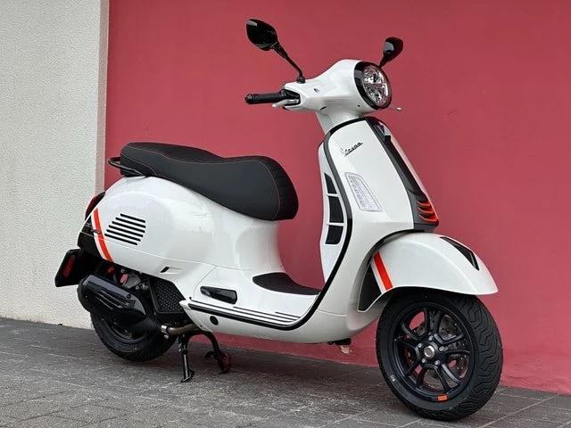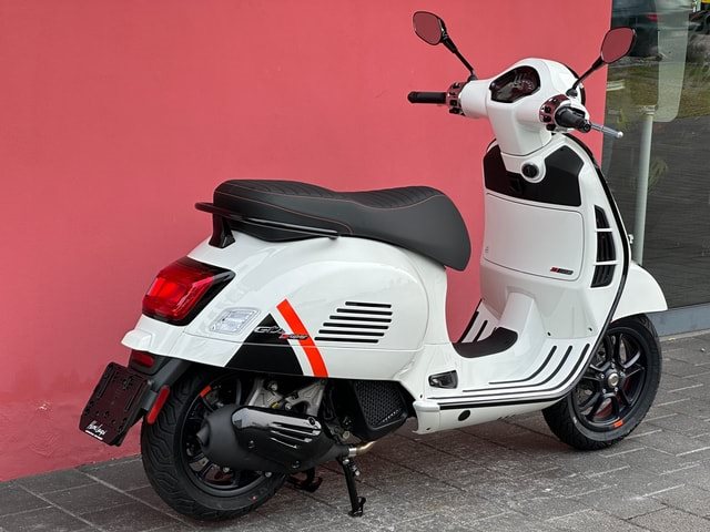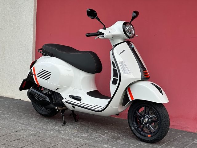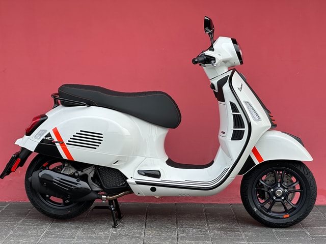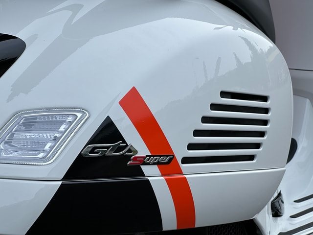 Die Vespa GTS SuperSport ist in einer großzügigen Auswahl an glänzenden und matten Farbschemata erhältlich, mit Einsätzen in Carbon-Optik und glänzenden schwarzen Details, die den perfekten Akzent für die von Ihnen gewählte Lackierung bilden. Die Vespa GTS SuperSport ist mit vielen zusätzlichen Details und Grafiken im sportlichen Stil ausgestattet. Der bequeme Sitz ist mit hochwertigem Material gepolstert und mit Kontrastnähten versehen.