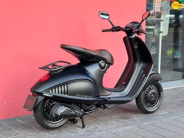 Die Vespa 946 Emporio Armani wurde in Zusammenarbeit von Giorgio Armani und Piaggio entwickelt um zwei der größten Symbole Italiens für Stil und Kreativität zu feiern. Für das Jahr 2015, das gleichzeitig das 40. Jubiläum von Giorgio Armani und der 130. Geburtstag der Piaggio Gruppe ist, hat Emporio Armani eine spezielle Version der Vespa 946 entworfen. Angelehnt an Armanis unverkennbar dezente Farbpalette wurde für das Projekt eine spezielle Kombination aus Grautönen mit subtilen Grüntönen genutzt, die nur unter bestimmten Lichtverhältnissen sichtbar sind. Der Name "Vespa 946" spielt auf das Jahr 1946 an, in dem der Roller - der Kult und berühmt auf der ganzen Welt ist - das erste Mal gebaut wurde. Das Design der neuen Emporio Armani Rollers ist eine moderne Neuinterpretation des originalen Vespa Stils. Die Metallteile wurden mit galvanischer Beschichtung satiniert und haben einen matten Effekt, passend zur Verarbeitung der Karosserie. Der Schriftzug Emporio Armani befindet sich auf der Seite, während das bekannte Adler Logo über dem Frontscheinwerfer angebracht ist. Die Vespa 946 Emporio Armani steht für Technologie aber auch Stil. Die Aluminiumblöcke, der braune Lederbezug, die Luxusausstattung, die elektronische Fahrunterstützung (die sich mit Geräten mit Internezugang verknüpfen lässt) komplementieren den innovativen 4-Takt-Motor, dessen verbesserter Spritverbrauch und veringerter Emissionsausstoss den Roller zum idealen Stadtfahrzeug machen. Die 220mm Doppelscheibenbremse, das Zweikanal-ABS-Bremssystem und die großen 12 Zoll Räder gewährleisten maximale Sicherheit auf der Straße. Die Vespa 946 Emporio Armani wird in einer exklusiven und nummerierten Auflage hergestellt und steht in den wichtigsten Städten der Welt zum Verkauf. Vespa Piaggio Hans Leupi - leupimoto.ch Aprilia Kawasaki Unser Showroom Auf über 1'500 m2 befinden sich unsere Fahrzeuge in den schönen, beheizten Räumlichkeiten. CEMBRA Leasing / Finanzierung Gerne bieten wir Ihnen individuelle und attraktive Finanzierungsmöglichkeiten an. Lassen Sie sich Ihre massgeschneiderte Offerte von uns erstellen. Eintausch Auch tauschen wir Ihr Fahrzeug, unserer Markenvertretungen, gegen ein Neufahrzeug zu fairen Preisen ein. Fahrzeugaufbereitung Die inserierten Preise sind exkl. Ablieferungspauschale zu verstehen. Social Media (@leupimoto) Folgen Sie uns auf Facebook, YouTube und Instagram damit Sie automatisch auf dem Laufenden gehalten werden. Wir freuen uns über Ihre Kontaktaufnahme per Telefon oder Mail oder über Ihren Besuch vor Ort - in Meggen!