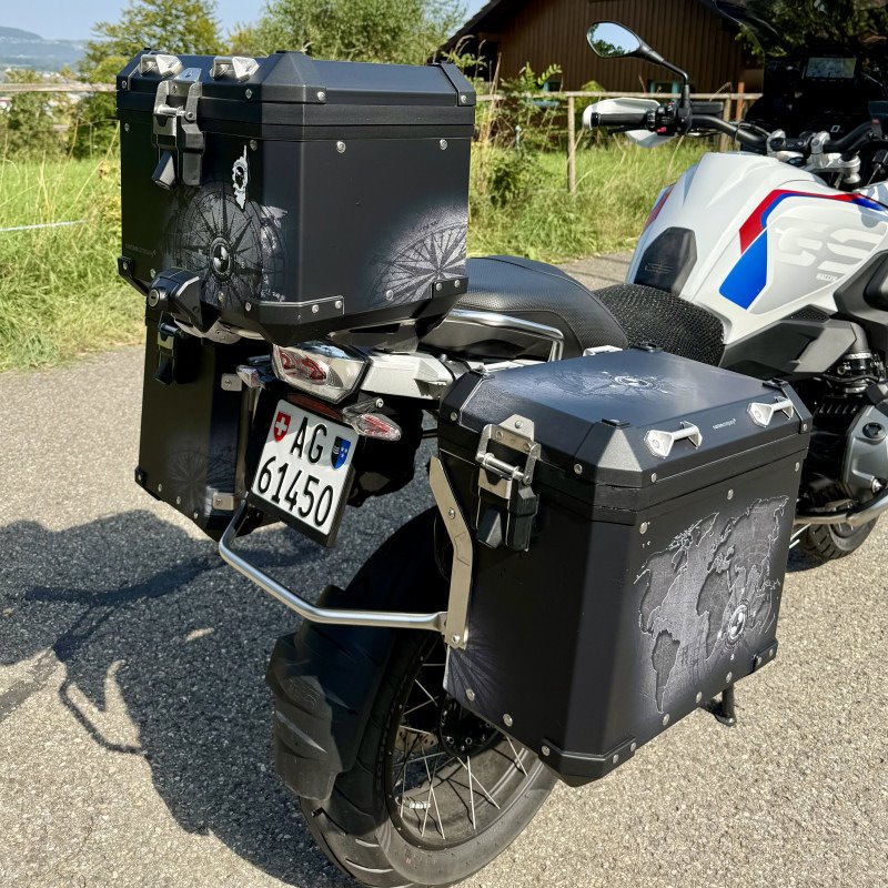 Mehrwert: BMW Navigator VI / Aluminiumkoffer beidseits und Topcase in Travel-Design Custom Compani / Wunderlich-Werkzeugsett in Sidebag / Endschalldämpfer Akropovic.