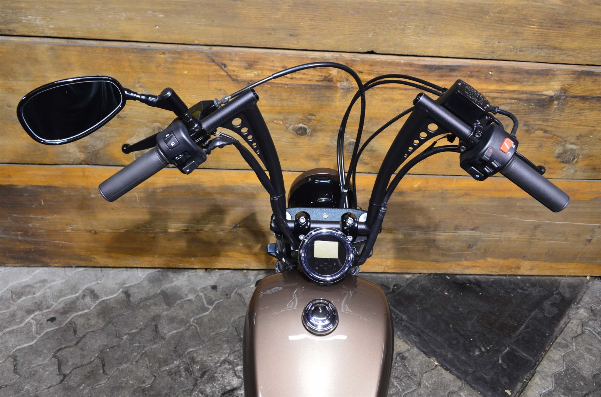 Zubehör: Speziallackierung, Lenkerumbau, Heckumbau, Stahlflexbremsleitungen, Sportluftfilter (nicht zugelassen, Original vorhanden), Motordeckel, Blinker vo. + hi., Rücklicht
