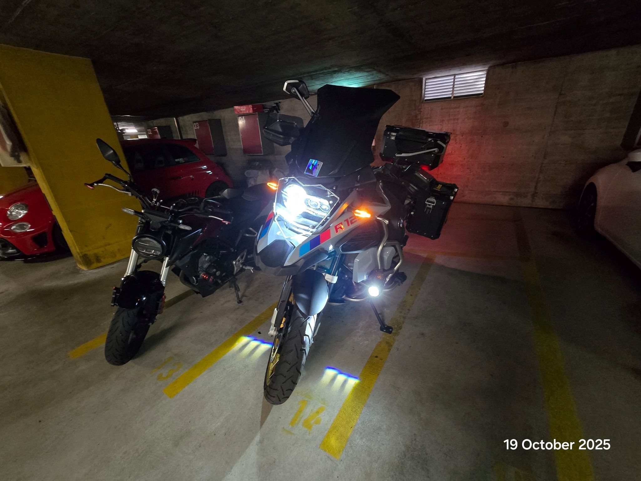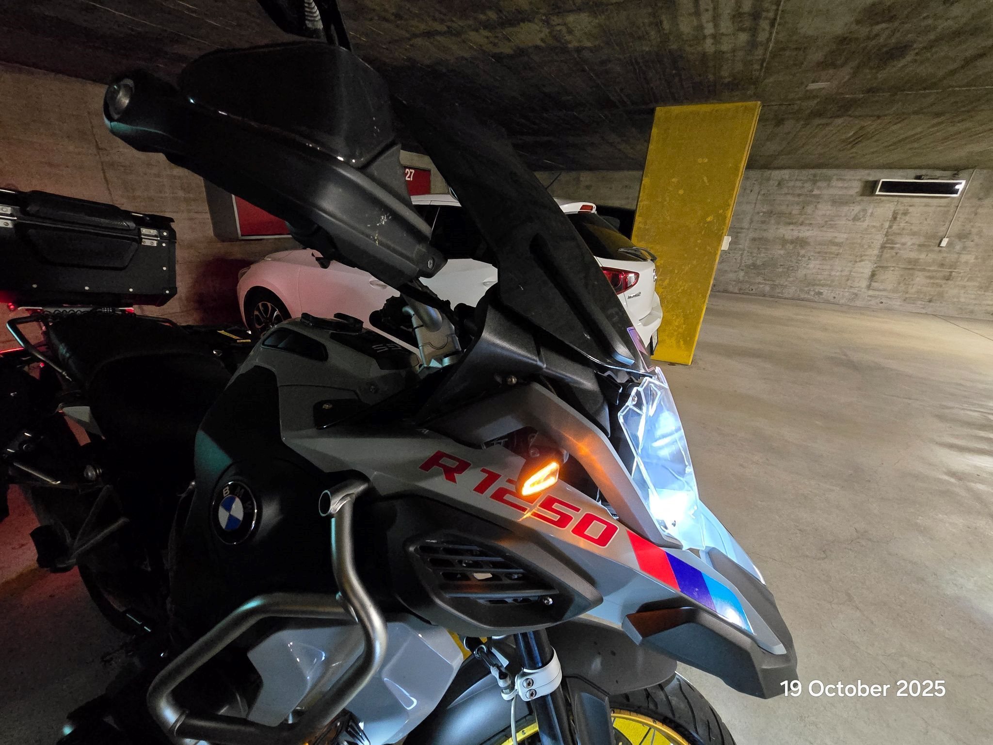 Extras: Quickshifter, schlüssellose Zündung, Fahrerassistenzsysteme (Bergstarthilfe), beheizte Griffe, Sitzheizung, spezielle niedrige Sitzbank, Wunderlich-Tieferlegungssatz für den Fahrersitz, 3 Visiere (klar, getönt, schwarz, wie auf den Bildern zu sehen), Akrapovic-Auspuff (ich habe auch den Originalauspuff), 2 Seitentaschen mit Schweizer Flagge auf den Motorschutzbügeln (wie auf den Bildern zu sehen), 2 originale schwarze BMW-Seitenboxen aus Aluminium, 44 l (links) 36 l (rechts), 1 Givi Trekker Outback, Topcase 58 l, ein spezieller Rückspiegel (siehe Bilder), extra gepolsterte Griffe für mehr Fahrkomfort, originale BMW-Lenkerklemme, orange (gelbliche) Abdeckgläser für die Nebelscheinwerfer, einige Carbon-Optik- und andere einzigartige Aufkleber (wie auf den Bildern zu sehen) und weiteres Zubehör im Lieferumfang enthalten.