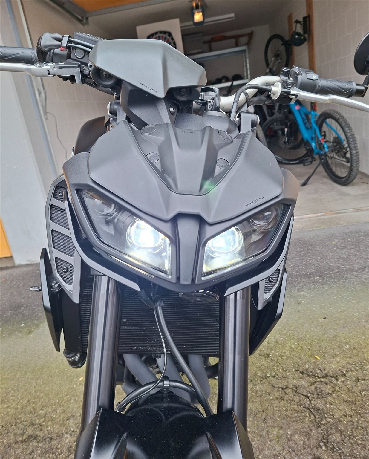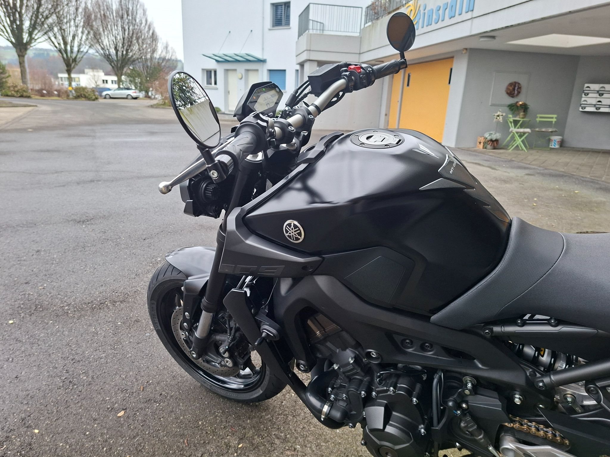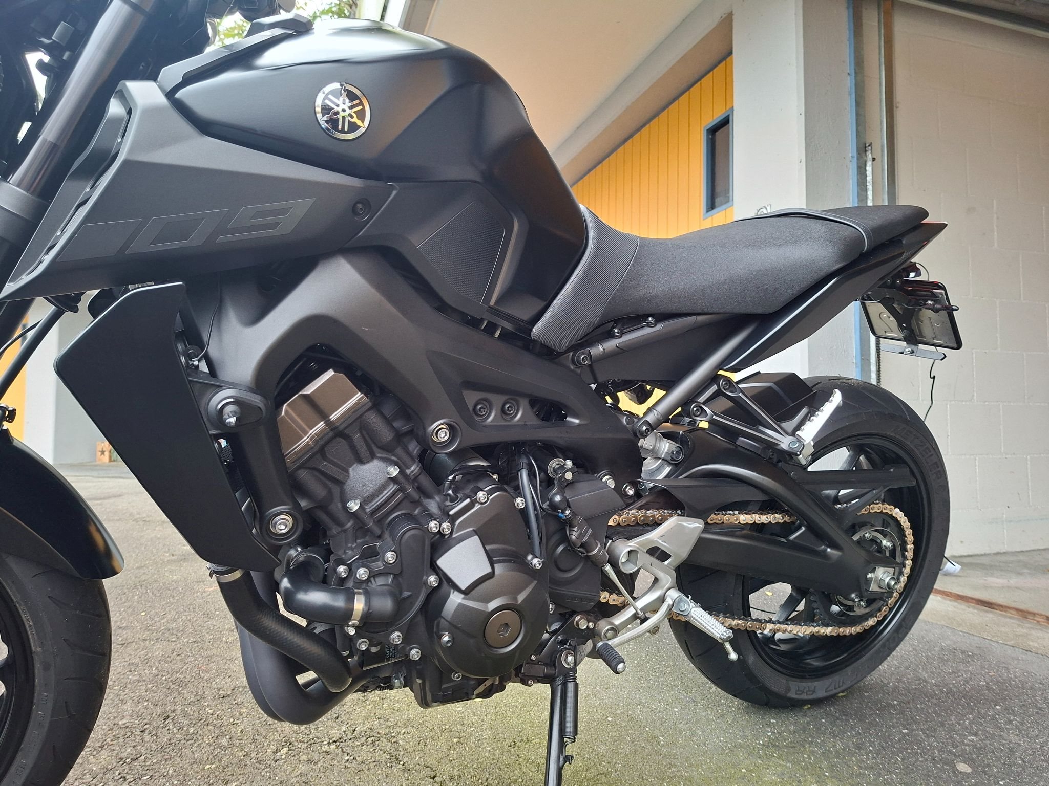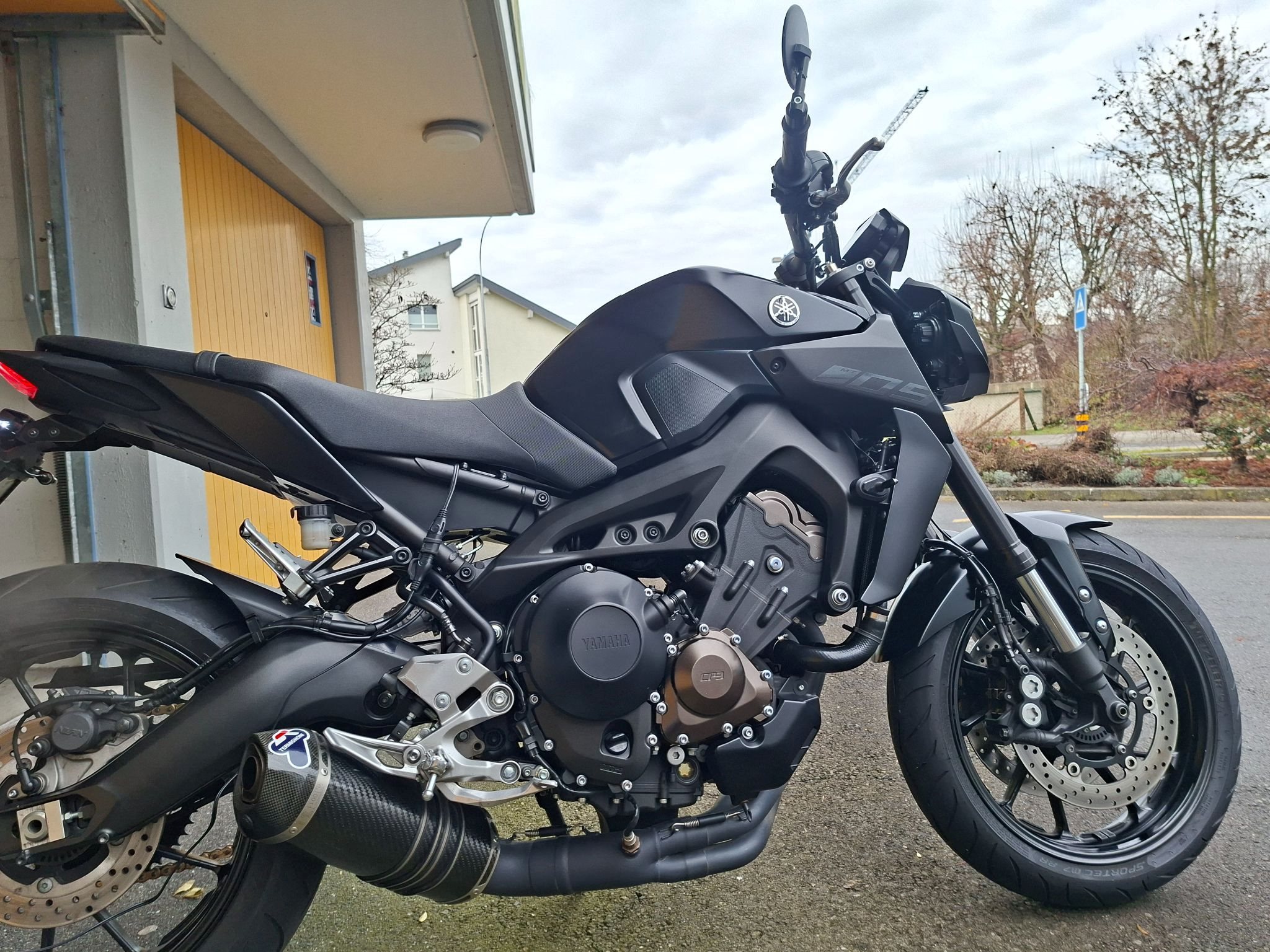 Der Heckumbau, kleine Blinker, Lenkerendspiegel wurde beim Yamaha-Händler gemacht. Zudem verfügt die MT-09 über eine Termignoni-Komplettanlage (geiler Sound); das Beiblatt ist selbstverständlich vorhanden. Der Original-Auspuff ist vorhanden und in einwandfreiem Zustand. Der Töff durfte immer in einer Garage stehen und ist äusserst gepflegt.