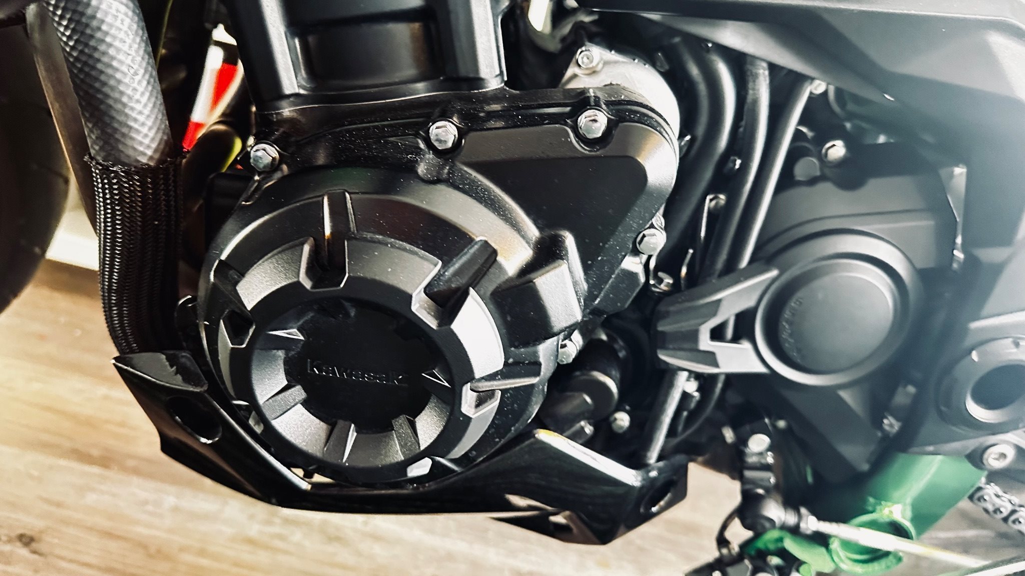Heckumbau, Barracuda Blinker, Raximo Brems-, und Kupplungshebel->Eingetragen, Speedpro Copra Auspuffanlage mit ABE, SW Motech Sturzbügel & Tankring, Neubezug Sitz inkl. Sozius Sitz. Zusätzlich Bugspoiler & Kettenschutz(nicht montiert) etc. Sämtliche Originale Kawasakiteile vorhanden. Fast neue Continental Sportattack4 (ca. 500 km gefahren) Auf Wunsch ab MFK.