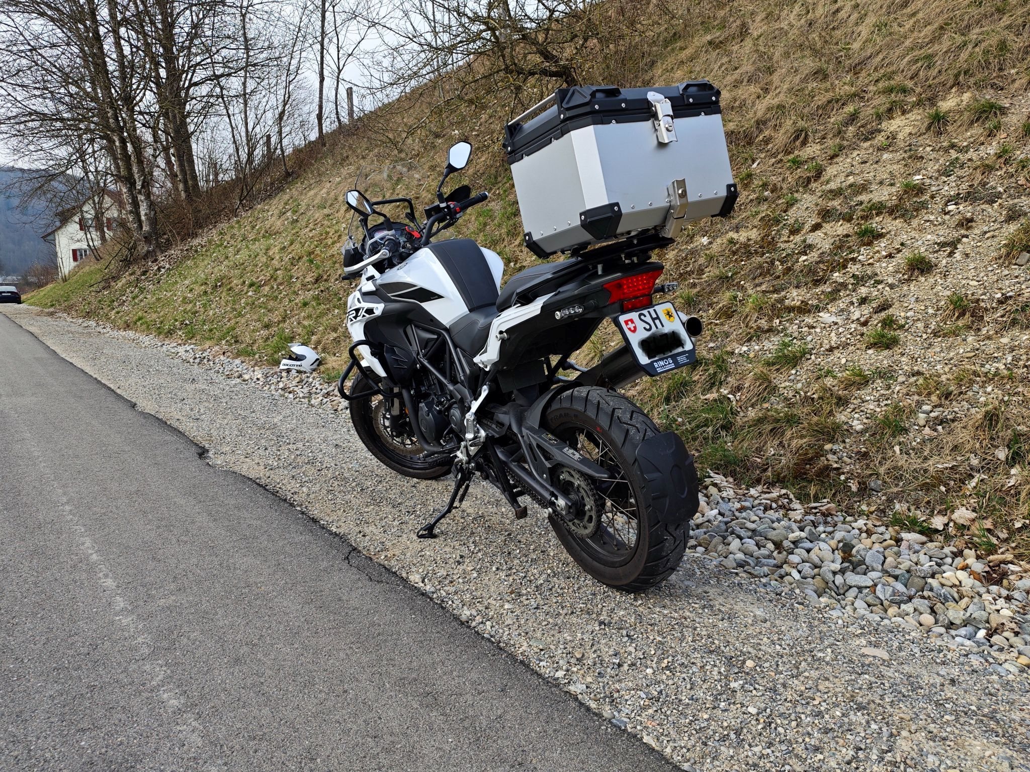 Dieses Motorrad ist ideal für Abenteuer und durch das 55 Liter Topcase auch für längere Touren geeignet.