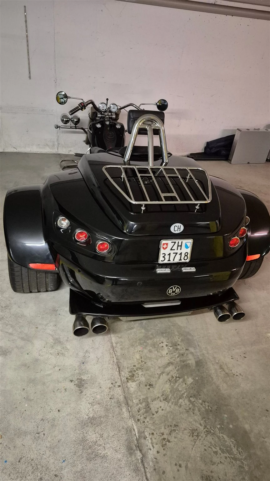 Trike mit Rollgurte vorne und hinten ausgestattet, grosser Kofferraum.