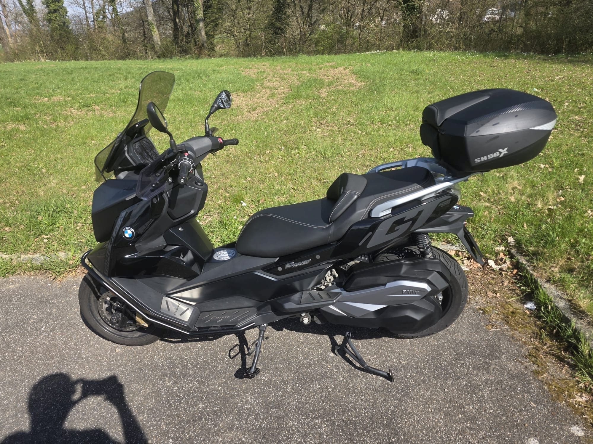 Für ausreichend Stauraum sorgen das BMW Flexcase sowie ein erweiterbares SHAD SH58X Topcase. Wer den Roller lieber im Originalzustand fährt, erhält die originalen Beifahrer-Haltegriffe selbstverständlich dazu. Abgerundet wird das Paket durch eine Handyhalterung und den Tucano Urbano Termoscud PRO Beinschutz für kalte Tage.