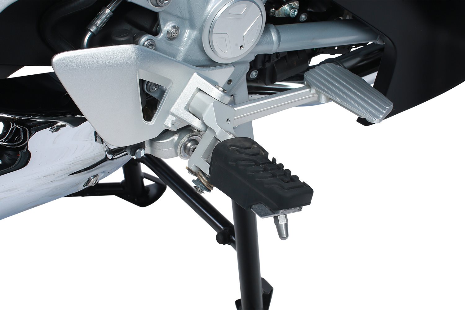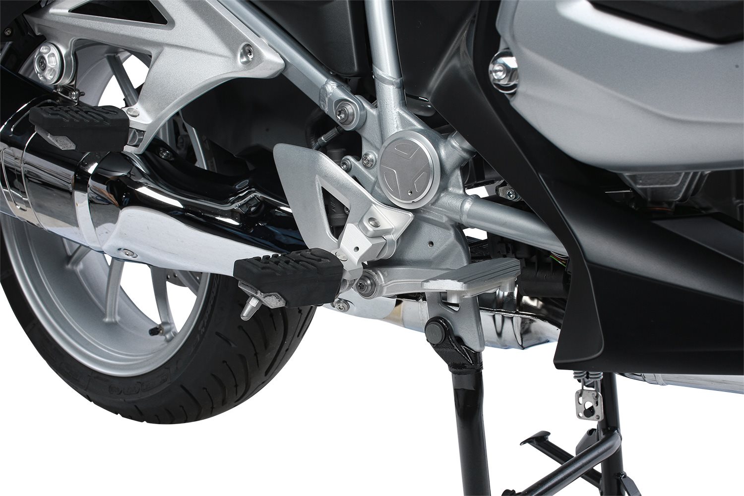 Diese unter ergonomischen Gesichtspunkten entwickelte Rastenverlegung für die BMW R 1200 RT sorgt für eine entspannte und bequeme Sitzposition, die auch bei längeren Etappen keinerlei Haltungsschäden hinterlässt.Um die optimale Fußposition zu erreichen, wurde diese Rastentieferlegung aufwendig aus dem Vollen gefräst. Der Langstreckenkomfort nimmt deutlich zu, da der Kniewinkel durchblutungsfördernd reduziert und schmerzlichen Verkrampfungen vorgebeugt wird. Es entsteht eine wesentlich angenehmere Einheit mit dem Fahrzeug und zudem lässt sich das Fahrzeug wesentlich besser in die Kurven drücken.
