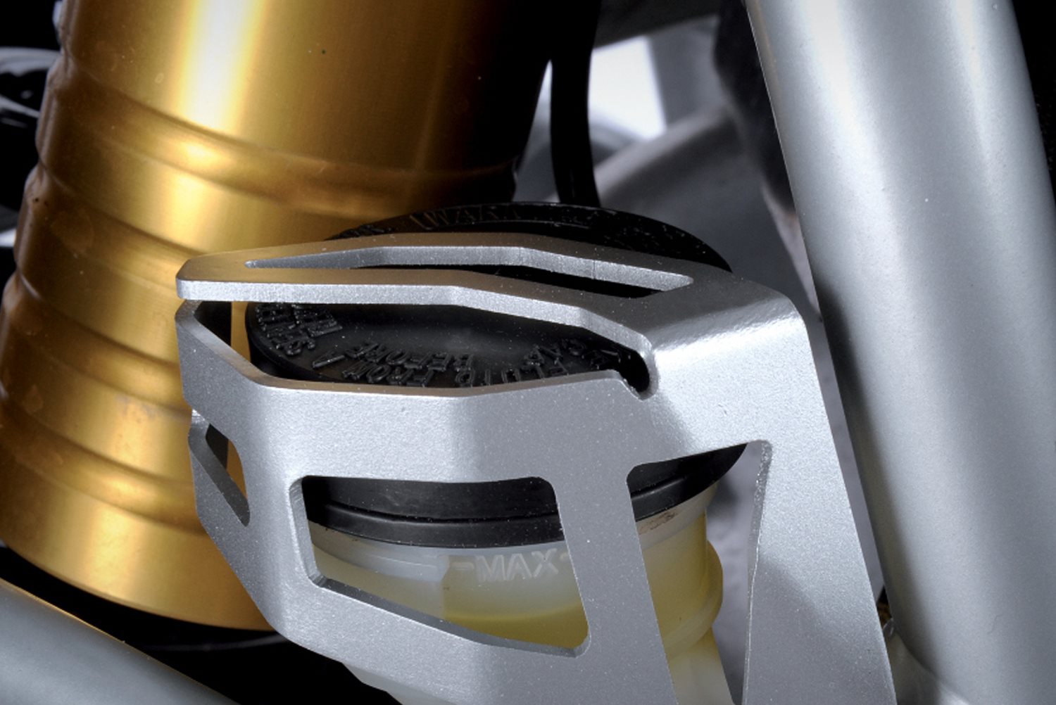Schützt den abrissgefährdeten Bremsbehälter. Der Behälter ist sehr exponiert angebracht und wird zudem nur von einer Schraube gehalten. Eine Unachtsamkeit beim Aufsteigen oder ein hervorstehender Ast reichen aus, um den Behälter zu beschädigen oder gar abzureißen.
