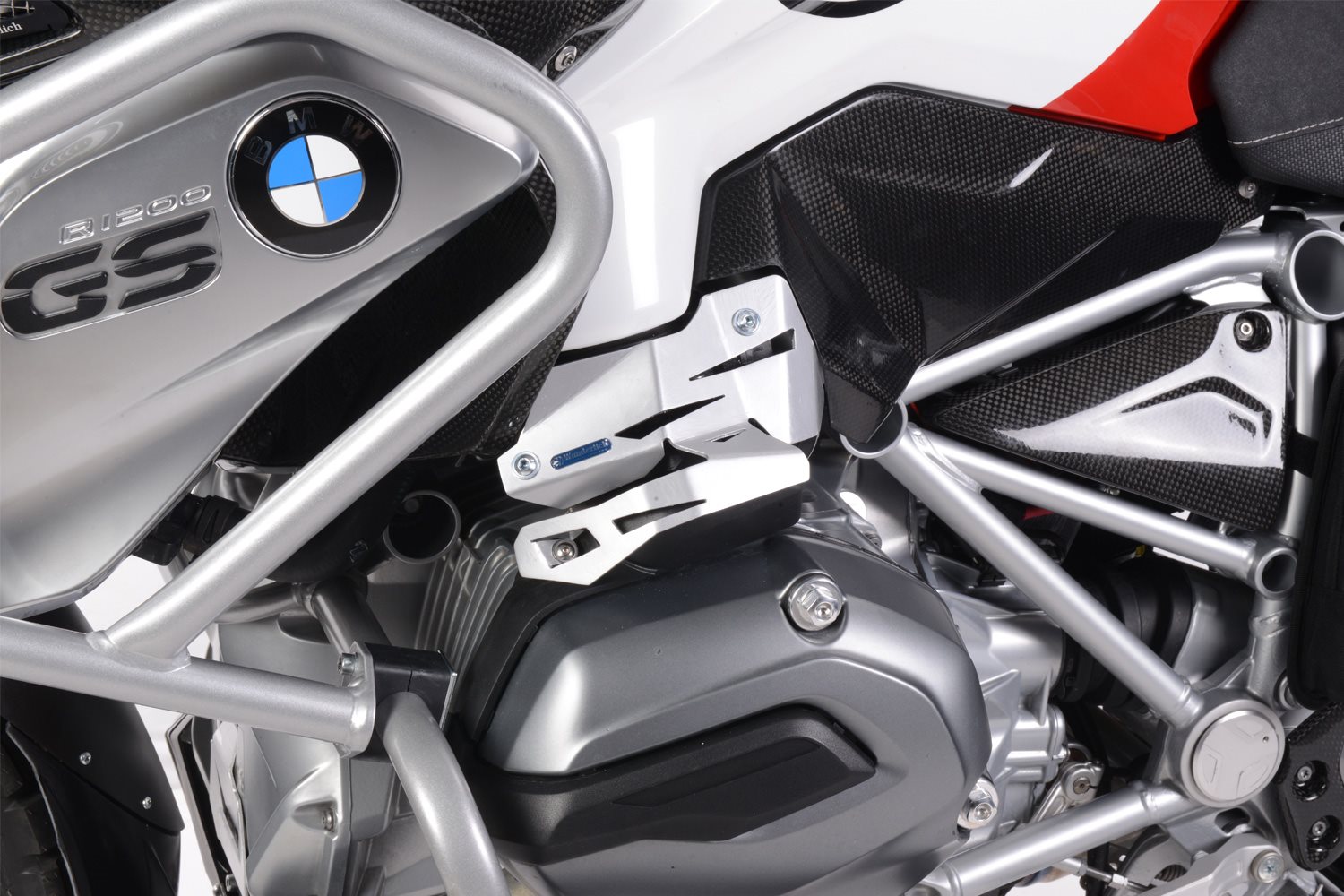Die Ansaugrohr-Einheit samt Einspritzrohr, Leitungsanschlüssen und dem Drosselklappensensor sind extrem abrissgefährdet. Zudem findet sich immer wieder ein Spaßvogel, der an unserer Langstreckenmaschine die schwarzen Stöpsel (Unterdruckanschlüsse am Einspritzrohr) mitgehen lässt. Auch kommt es immer wieder zu Undichtigkeiten an den Steckverbindungen (Regenwasser dringt ein), die auf vermehrten Kontakt mit Stiefel, Hose etc. zurückzuführen sind. Optisch verlängern wir die Zylindereinheit und beseitigen das Ansauggewirr, wodurch eine neue, dynamische Einheit entsteht. Eine konsequente Linie entsteht, die in der Form noch nie dagewesen ist.