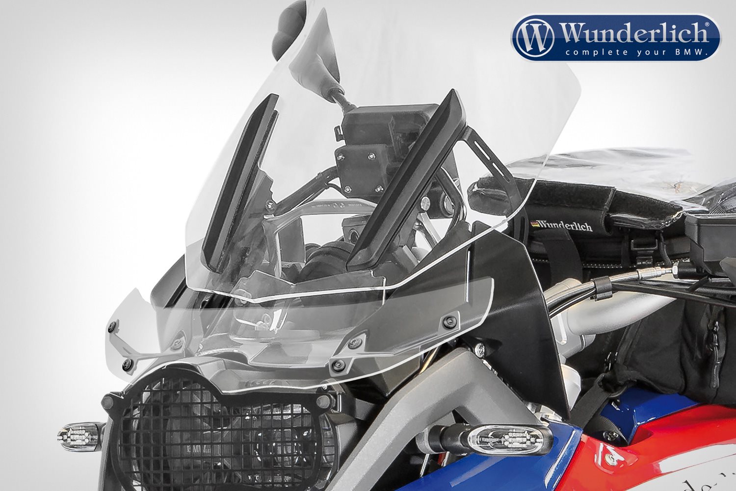 Dieser Windabweiser perfektioniert den Windschutz auf der GS. Er wird direkt oberhalb der Scheinwerfer montiert und schließt dadurch effizient die Lücke zwischen Scheinwerfern und Scheibe. Der Windabweiser passt sich sehr unauffällig dem Design der Front an und besteht aus dem gleichen Material wie unsere Scheibe.