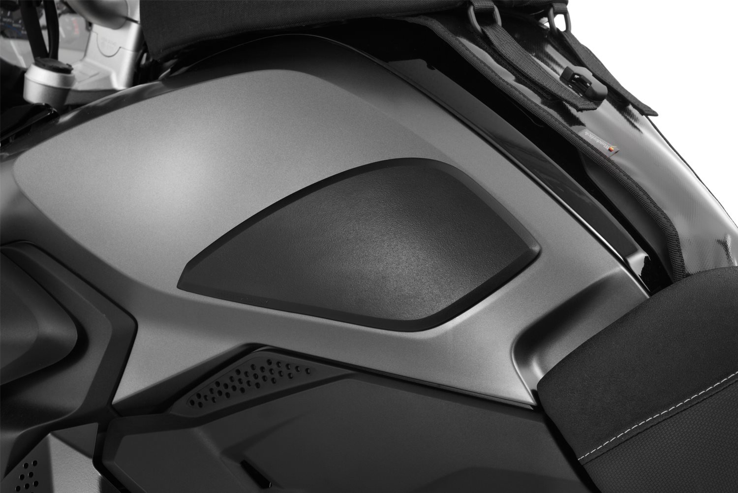 Genau auf das Design der BMW abgestimmter Satz Tankpads, der an allen Kontaktstellen effektiv vor Kratzern, Beschädigungen und Abrieb am Tank schützt.
