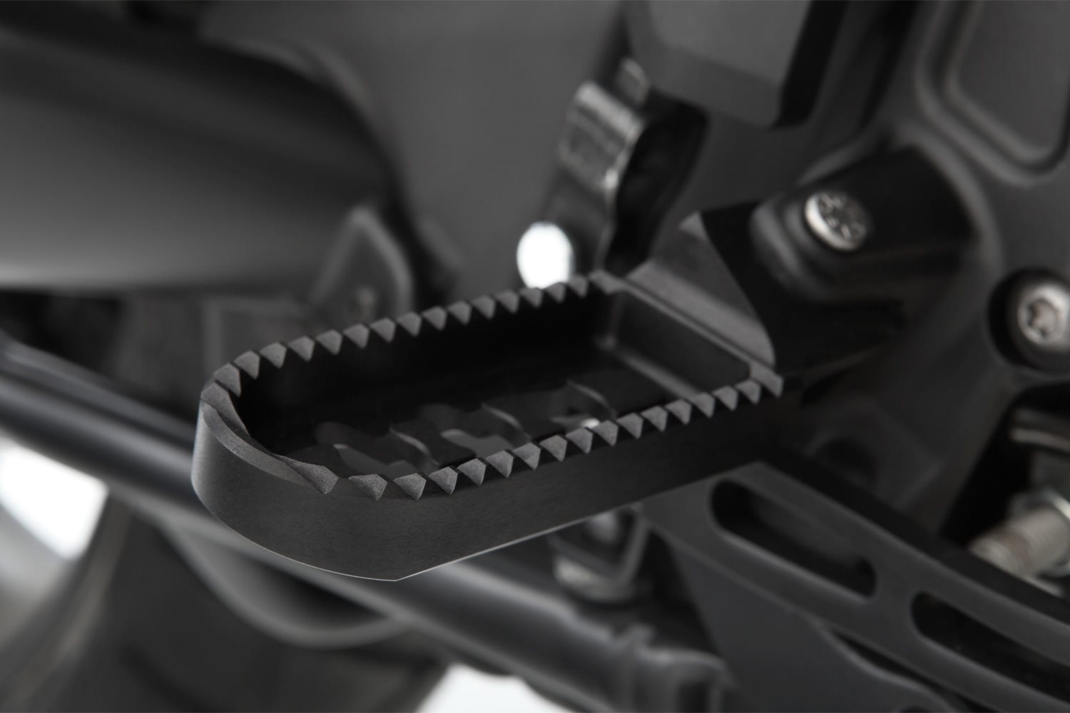 Mit unserer durchdachten Konstruktion erreichen wir eine spürbare, ergonomisch wirksame Tieferlegung, ohne die Rastenbasis und damit die Fußauflage nennenswert nach außen zu verlagern. Eine Maßnahme, die wiederum dem Komfort zuträglich ist. Gleichzeitig bleibt die Schräglagenfreiheit auf hohem Niveau erhalten. Die gute Erreichbarkeit von Schalt- und Bremshebel und deren sichere Bedienung machen das Fahren zum Vergnügen.