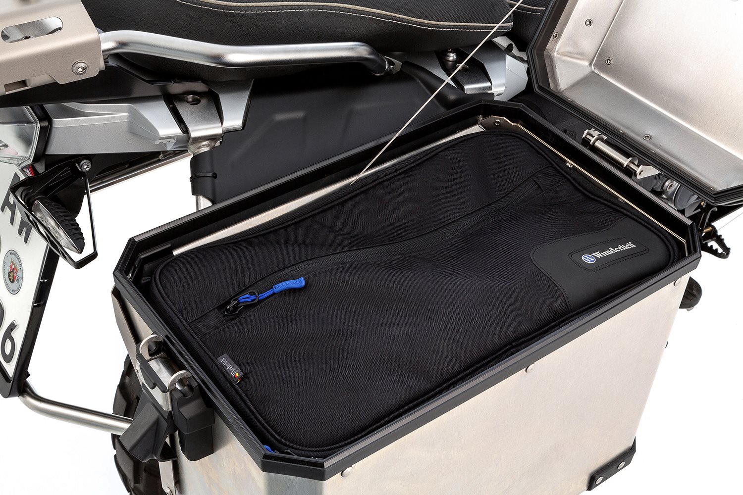 Unsere hochwertigen, robusten, formschönen Innentaschen erweisen sich als perfekt passend für die Original BMW Alukoffer, für unsere EXTREME Koffer regular (nicht die schmale slimline Variante) sowie alle gängigen Motorrad-Seitenkoffer vergleichbarer Größe (bitte Maßangaben beachten). Bei dieser Innentasche handelt es sich um diejenige für den rechten Koffer. Wir haben sie maßgeschneidert und dabei natürlich die besondere Form des Cutouts des rechten Koffers berücksichtigt, damit kein Platz verschenkt wird und Sie das Volumen von 32 Litern vollständig ausnutzen können. Damit Ihnen die Tasche aus robustem Polyester 600D die von Wunderlich bekannte maximale Funktionalität bietet, weist sie folgende weitere, funktionale Merkmale auf: Zum Schutz des Inhalts und zur Dämpfung von Vibrationen ist die Tasche mit einer Polsterung gefüttert, die ihr auch in leerem Zustand und trotz des geringen Eigengewichts Formstabilität verleiht. Zwei gegenläufige Zipper öffnen das Hauptfach über drei Seiten und erlauben als Toploader komfortables Packen von oben, damit der Inhalt der Tasche für Sie auch im Koffer stets griffbereit zugänglich bleibt. Die Tasche verfügt über ein Außenfach sowie ein Fach in der Klappe, die jeweils großzügig bemessen (> Din A4) und mit griffgünstigen Zippern verschließbar sind. Das Wunderlich typische blaue Innenfutter sorgt mit seinem kontrastierenden Hintergrund für Übersichtlichkeit - so kann nichts mehr in den Ritzen verschwinden. Für den Transport ins Hotelzimmer, haben wir einen komfortabel ausgestatteten Schultergurt angebracht. Mit Wunderlich Markenlogo. Hinweis Fakten Funktion Technische Daten Ihre Wunderlich VorteileBeschreibung zu Wunderlich Innentasche für BMW Aluminium Koffer - schwarz - rechts anzeigen