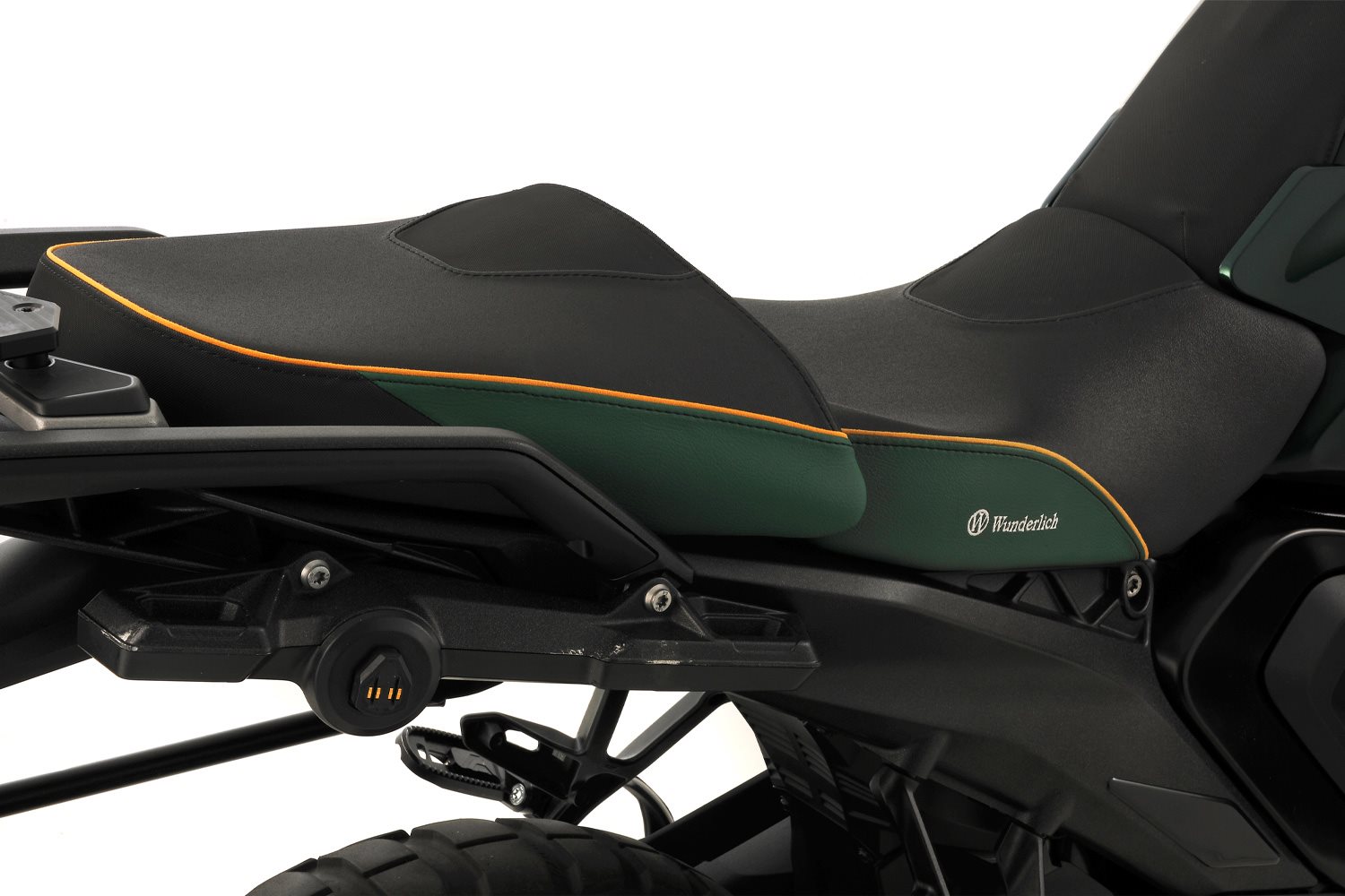 Funktion und Produktmerkmale Technische Daten Ihre Wunderlich Vorteile Entspannt und fahraktiv auf kurzen und langen Strecken. Wir fertigen unsere Beifahrersitze mit einer charakteristischen, ergonomischen 3-D-Kontur. Die Form und Neigung des aufwändig verarbeiteten Sitzbankkerns unterstützen die ergonomische vorteilhafte, natürliche Haltung des Beckens. Ein besonderes Merkmal unserer Beifahrersitzbank ist die im vorderen Bereich der Sitzbank integrierte Stützkontur, die beim Bremsen zusätzlich sicheren Halt gibt. So ins Motorrad integriert, fährt es sich einfach entspannt und damit aktiv. Und, kein Zweifel, entspanntes Sitzen schafft ein Plus an passiver Sicherheit. Diese AKTIVKOMFORT Sitzbank verfügt über die neueste ThermoPro Technologie, bei der die Temperatur der Sitzfläche im Hochsommer in praller Sonne um bis zu 25°C niedriger im Vergleich mit herkömmlichem Bezugsmaterial ausfällt. Passend dazu haben wir eine Fahrersitzbank im Programm. AKTIVKOMFORT Sitzbank mit einstellbarer Sitzheizung Smart Plug & Play Das AKTIVKOMFORT Sitzheizelement besteht aus einem robusten Vlies, in das ein feiner, jedoch ausgesprochen zugfester, widerstandsfähiger Heizdraht aus Edelstahlfilament integriert ist, der in zahlreichen Windungen verlegt wird. Dieser aufwendige, auf Langlebigkeit und Strapazierfähigkeit ausgelegte Aufbau sorgt für eine gleichmäßige, als besonders angenehm empfundene, optimale Wärmeverteilung, die den Sitzkomfort spürbar steigert und für die notwendige Elastizität, die notwendig ist, damit das Sitzheizelement die starke Beanspruchung, die sich aus der Bewegungen, der Dehnung und Kompression des Sitzpolsters beim Aufsitzen und Fahren ergibt, dauerhaft flexibel ausgleichen kann. Für alle AKTIVKOMFORT-Sitzbänke gilt:Beschreibung zu Wunderlich Beifahrer Sitzbank AKTIVKOMFORT mit Sitzheizung Smart Plug - grün-gold - Standard anzeigen