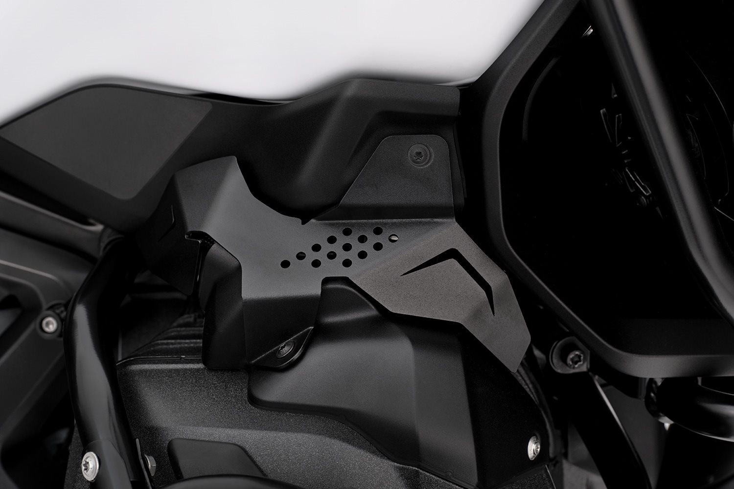 Die ansprechenden Schutzabdeckungen für den Bereich des rechten und linken Ansaugstutzens mit den Drosselklappen sowie den dahinter liegenden Steuereinheiten. Ihre Schutzwirkung umfasst den Schutz gegen mechanische Beschädigungen durch äußere Einwirkungen, den Schutz vor Verschmutzung der empfindlichen Technik und den Schutz gegen unerwünschte Manipulation durch Unbefugte. Durch die präzise angeordneten Kantungen, die Öffnungen und das Oberflächenfinish ist Designintegration perfekt gelungen: Es setzt einen hochwertigen Akzent und bleibt doch dezent. Die Montage gestaltet sich einfach.