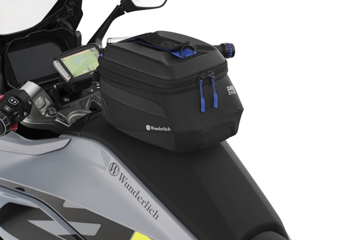 - Die Befestigung erfolgt einfach, schnell und komfortabel durch Aufsetzen des Tankrucksacks bis die Arretierung verriegelt